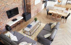 Drewno i jego imitacje na posadzce ocieplają przestronne wnętrza w stylu loftowym. Zachowując industrialny charakter wnętrz [...]