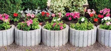 Do obramień rabat lub dużych soliterów, takich jak krzewy ozdobne czy drzewa warto wykorzystać trwałe betonowe palisady. Wykonane w takiej samej stylistyce jak materiały nawierzchniowe stworzą spójną kompozycję z betonową nawierzchnią tarasu lub ogrodowych ścieżek.